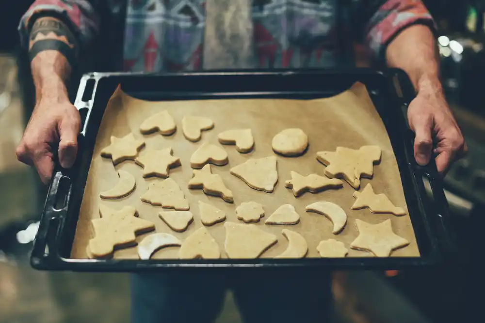 Nyújtsd ki körülbelül fél centi vastagra, szaggasd ki a formákat, majd 180 fokra előmelegített sütőben süsd 8–10 perc alatt. Egy plusz perc is sok lehet, ezért nagyon figyeld a sütit. Amikor kiveszed, még puha lesz, és hűlés után sem keményedik meg.