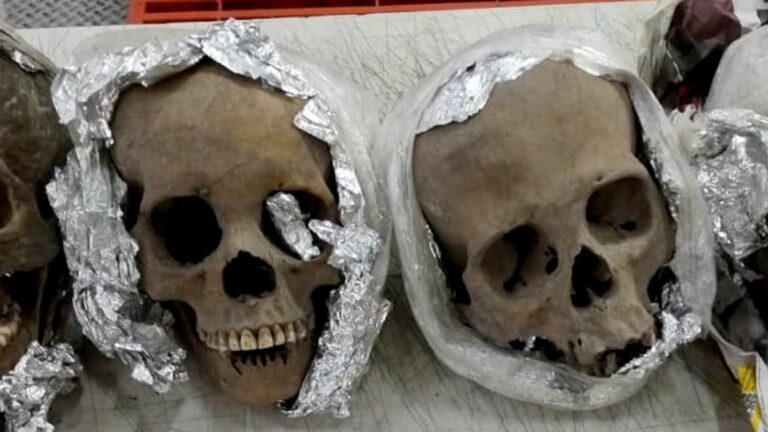 Gyanús volt a poggyász, emberi koponyákat találtak benne – KÉPEK