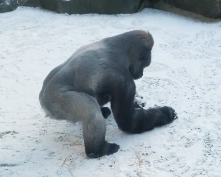 Übercuki VIDEÓ: ez a gorilla hógolyózásra használta ki a hirtelen jött havazást